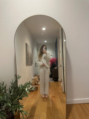 The chunky knit of this lounge set wraps you in warmth, making it the perfect companion for chilly fall and winter days. Its cozy fabric ensures comfort whether you're staying in or stepping out.